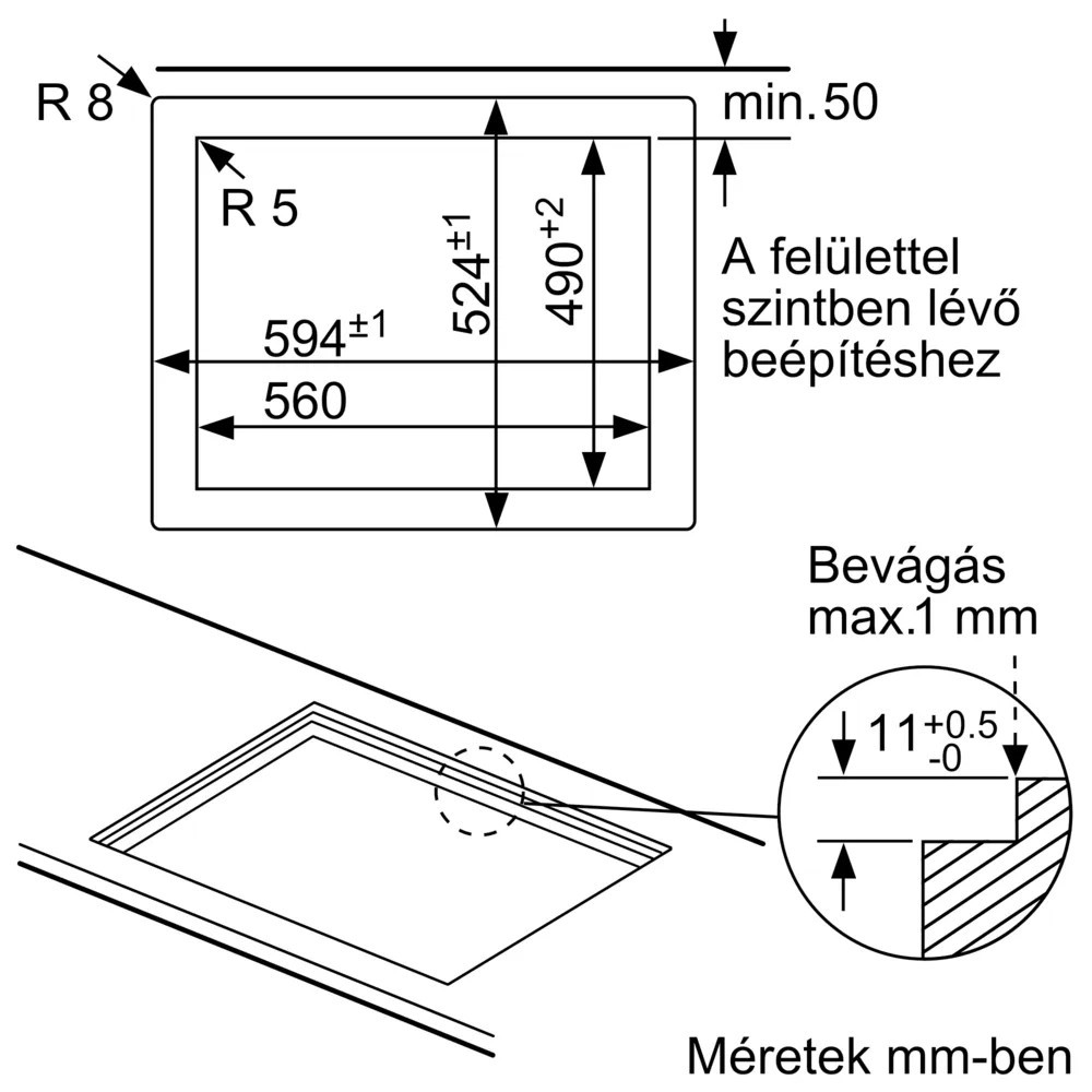 • Gázfőzőlap edzett üveglapon