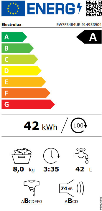 - Energiaosztály (mosás ciklus): A